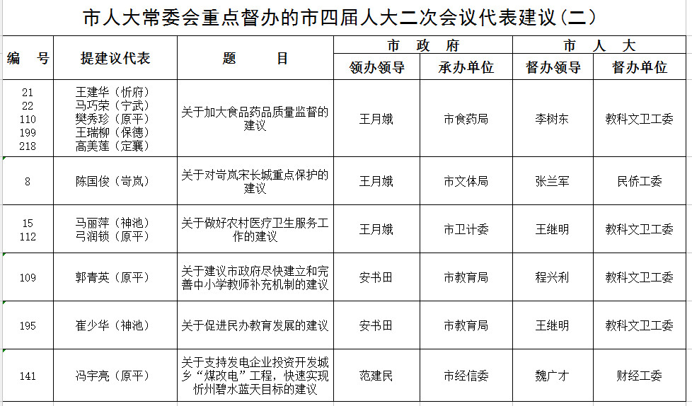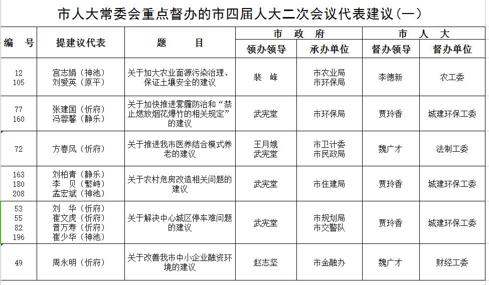 市重点督办四届二次会议建议(公示)