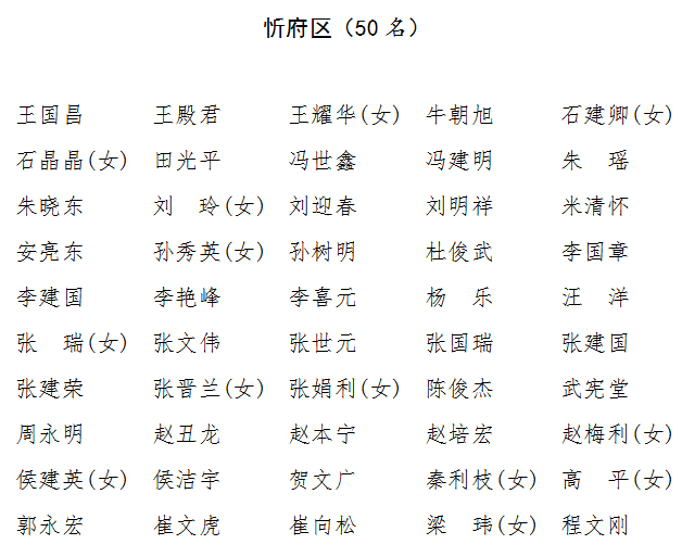 忻州市第四届人民代表大会常务委员会第四十三次会议于2022年2月17日召开,会议审议通过了《关于忻州市第五届人民代表大会代表资格审查情况的报告》,确认当选的347名市五届人民代表大会代表资格有效。现予公告。 (按姓名笔画排列)