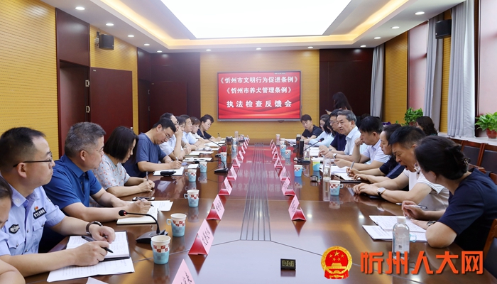 本网讯 (记者 黄金龙)7月13日上午,市人大教科文卫委员会组织召开《忻州市文明行为促进条例》和《忻州市养犬管理条例》(以下简称两个《条例》)执法检查反馈会,市人大教科文卫委员会主任委员王永秀主持会议,执法检查组成员、市委宣传部副部长、文明办主任葛小树反馈执法检查情况。