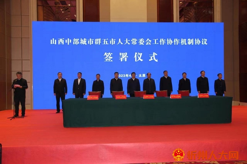 本网讯(记者张林泉)4月24日,山西中部城市群五市人大常委会工作协作机制签署仪式暨联席会在太原召开,共商协同履职事宜,通过发挥人大制度优势,提升城市群依法治理和发展的效能,加快推动山西中部城市群高质量发展。市人大常委会主任王珍出席签署仪式并作交流发言。